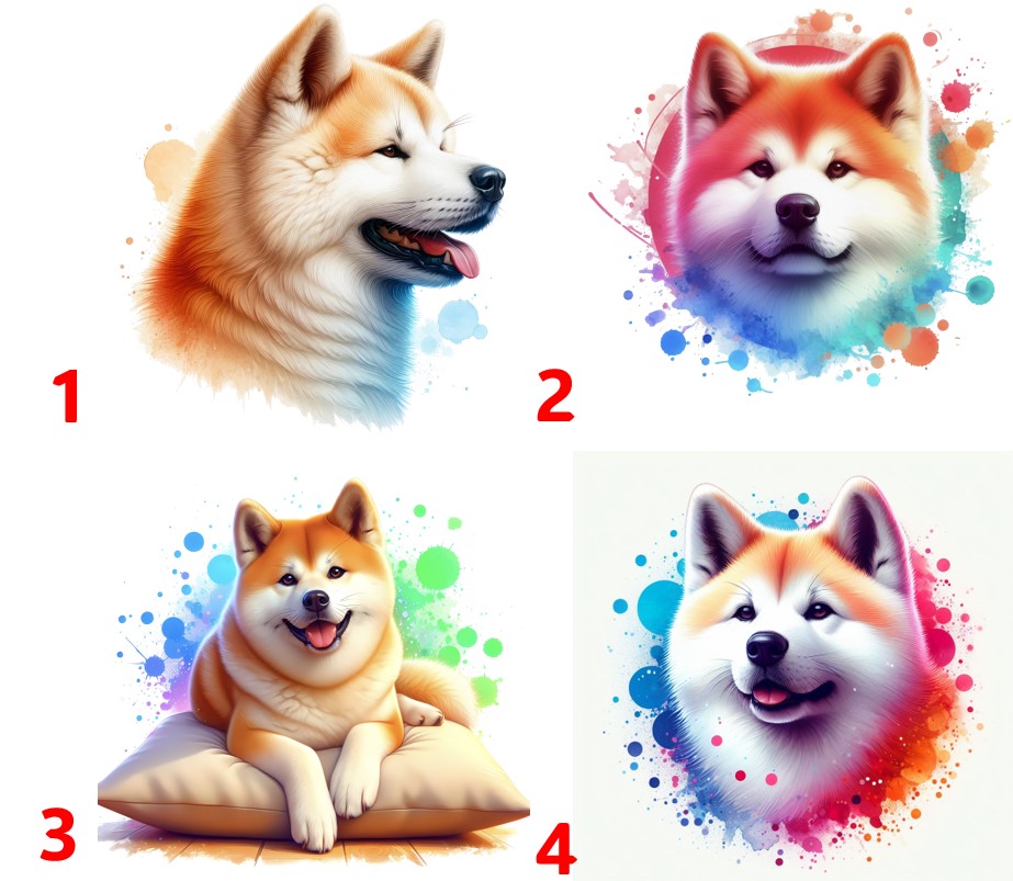 Akita Inu zrzavá - 4 motivy