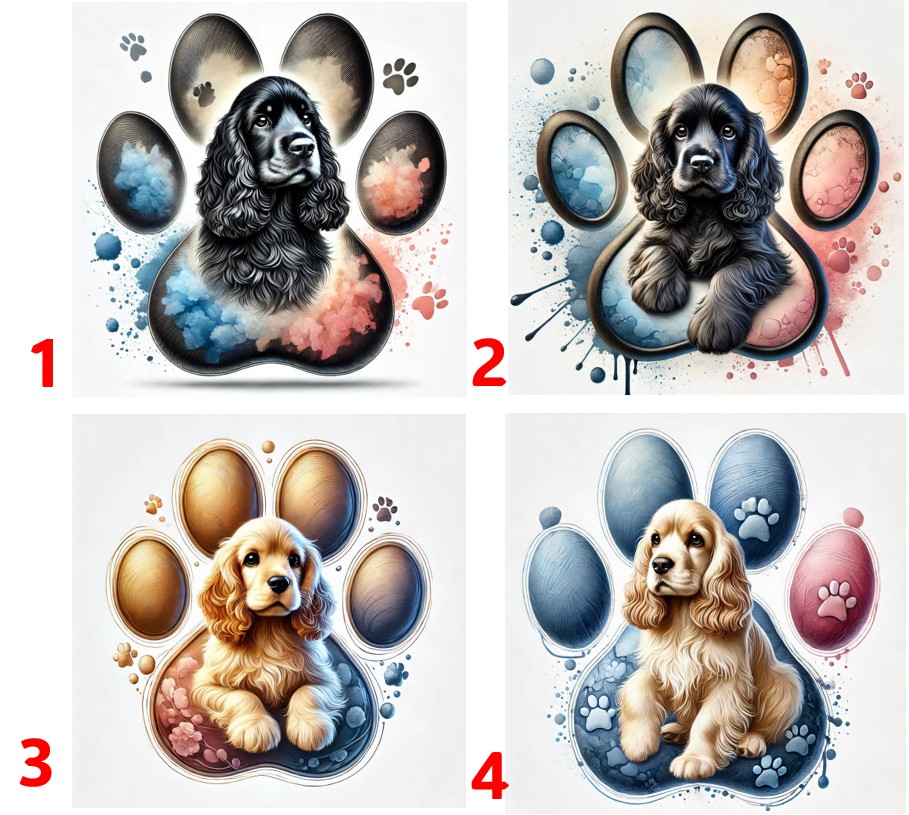Nažehlovačka Anglický kokršpaněl v tlapce - 4 motivy Popis výrobku: Barevná nažehlovačka, která přidá veselý a originální nádech do vašeho oblečení nebo doplňků. Nová technologie nažehlovaček DTF, která je vhodná pro různé textilní materiály. Lze nažehlit i na papír a karton. celý popis