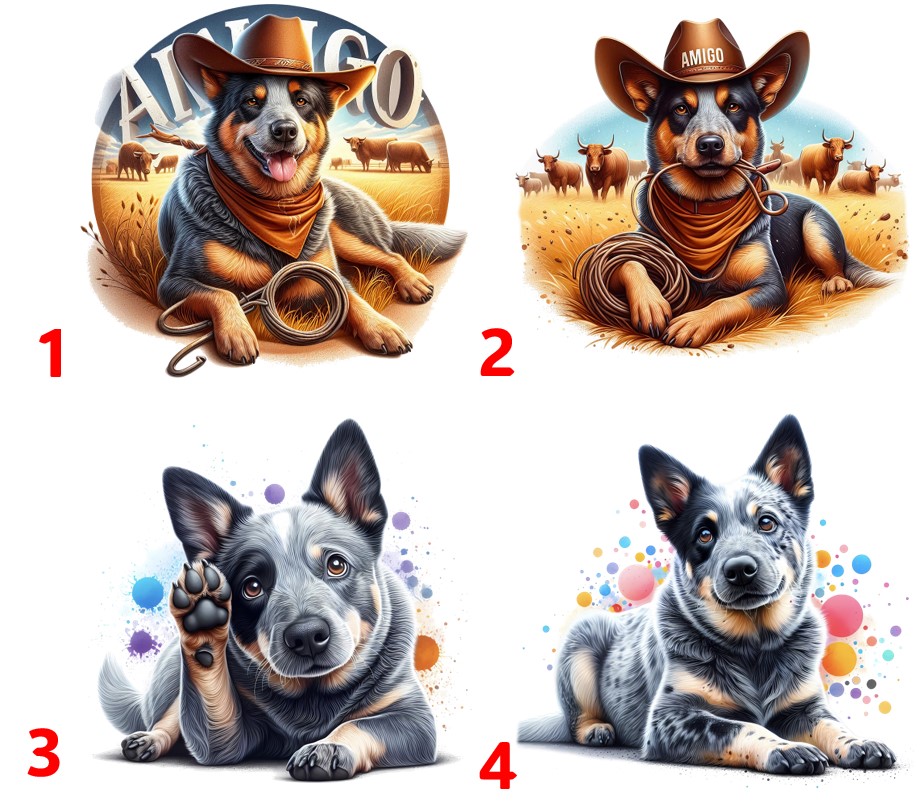 Nažehlovačka Australský honácký pes - 4 motivy Barevná nažehlovačka, která přidá veselý a originální nádech do vašeho oblečení nebo doplňků. Nová technologie nažehlovaček DTF, která je vhodná pro různé textilní materiály. Lze nažehlit i na papír a karton. celý popis