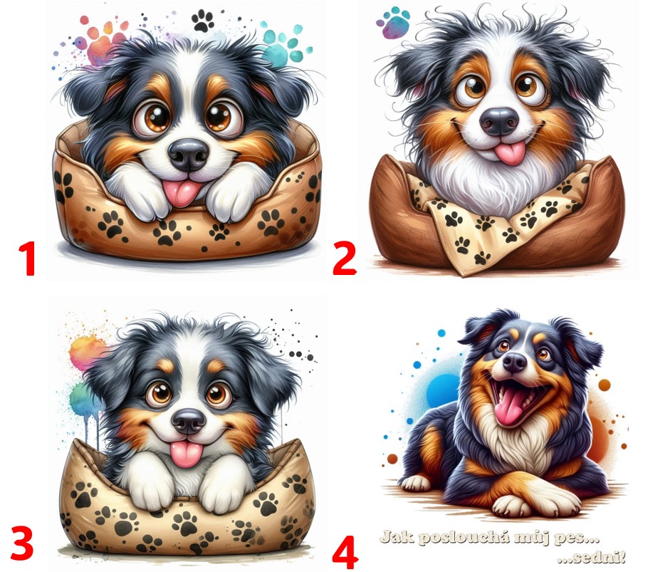 Australský ovčák karikatura - 4 motivyskladem 5 ks89 Kč/ ks