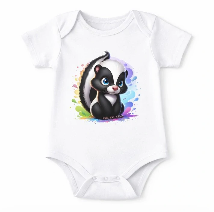 Dětské bodýčko malý smraďoch Náš potisk na body je aplikován moderní technologií DTF, která zaručuje dlouhou životnost i po opakovaném praní. Používáme ekologické barvy a materiály šetrné k dětské pokožce. Bodýčka jsou ušita z příjemného materiálu ,aby nedráždila pokožku dítěte. celý popis