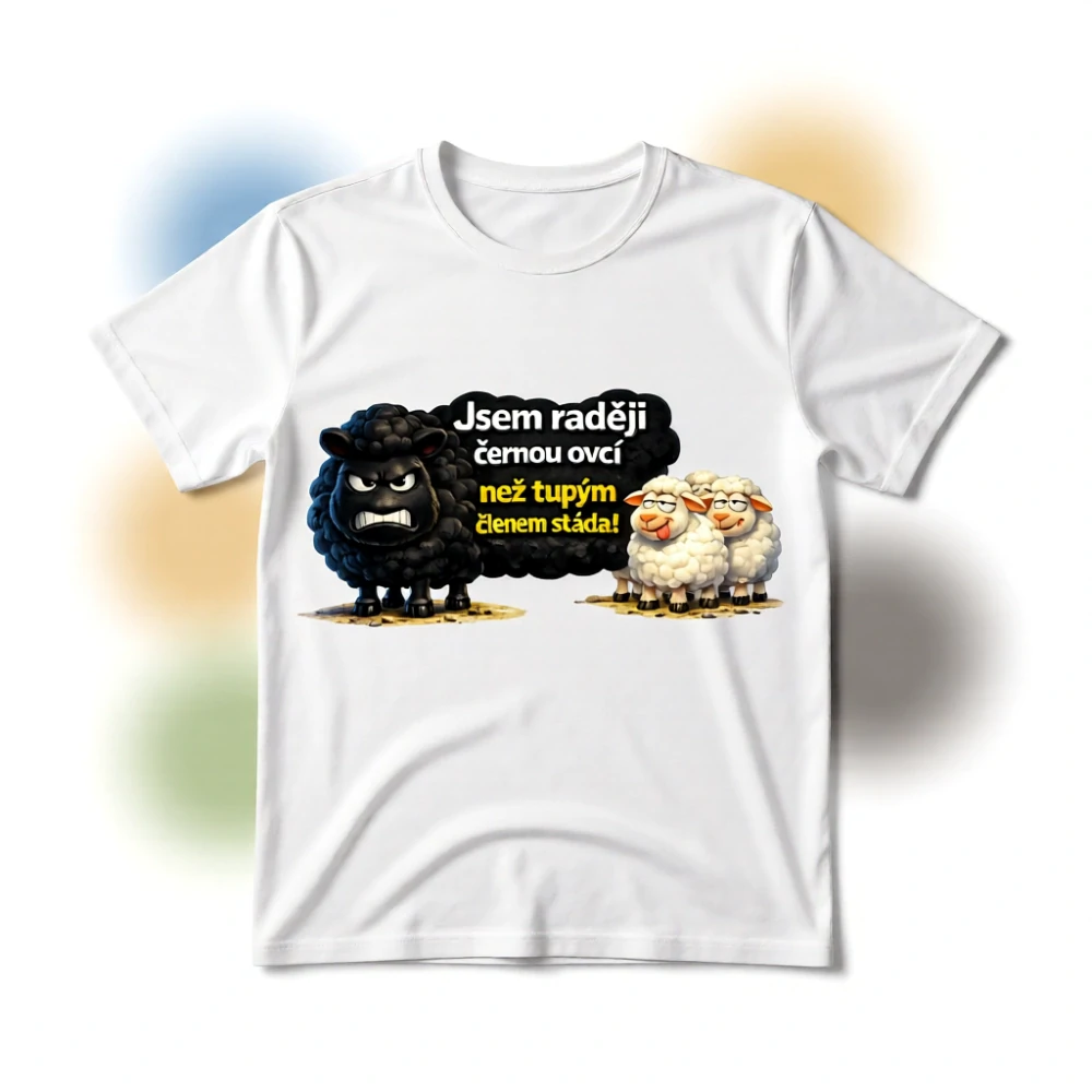 Tričko „Raději černou ovcí“ Někdo zapadá. Někdo přikyvuje. A někdo si prostě stojí za svým – i kdyby měl být černá ovce. Tohle tričko je pro všechny, kteří se nebojí vyčnívat z davu, přemýšlet po svém a jít proti proudu. Na jedné straně naštvaná černá ovce, na druhé spokojené bílé stádo… celý popis