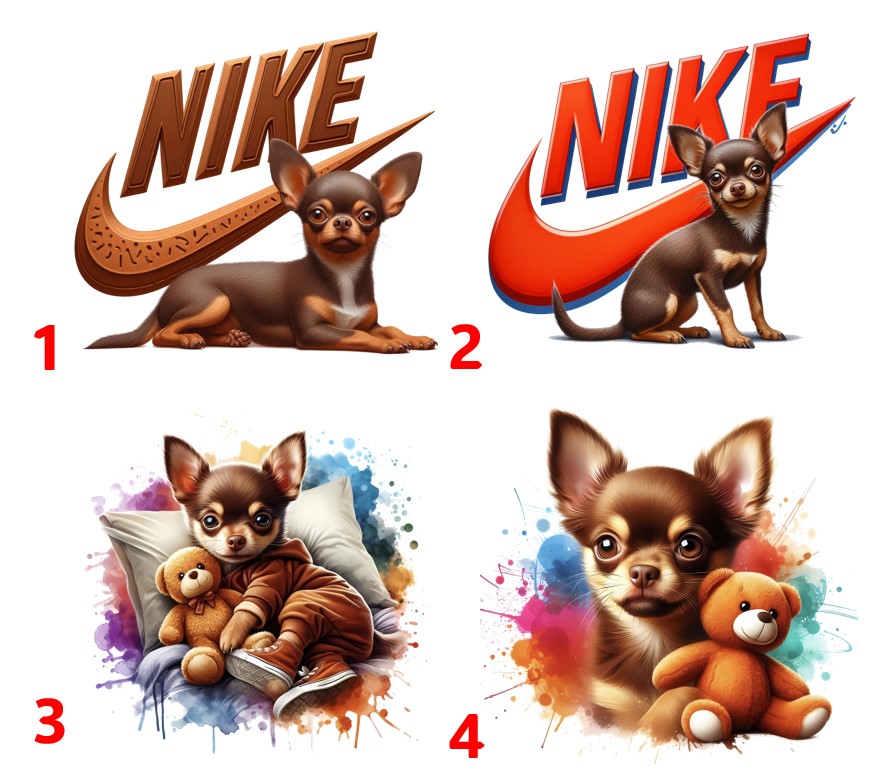 Čivava nike - 4 motivyskladem 5 ks49 Kč/ ks