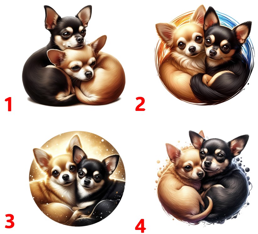 Nažehlovačka Čivava světlá a tmavá II - 4 motivy Barevná nažehlovačka, která přidá veselý a originální nádech do vašeho oblečení nebo doplňků. Nová technologie nažehlovaček DTF, která je vhodná pro různé textilní materiály. Lze nažehlit i na papír a karton. celý popis