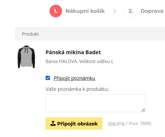 - Do poznámky napište číslo produktu obrázku, který jste si vybrali na potisk.