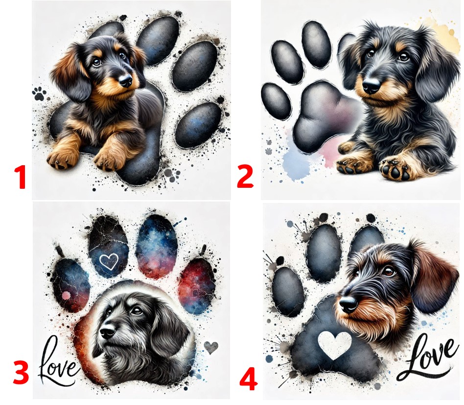 Jezevčík drsnosrstý - 4 motivyskladem 5 ks139 Kč/ ks