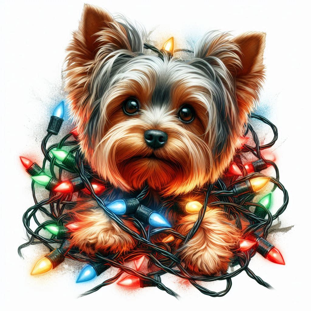 Nažehlovačka Jorkšír a vánoční světýlka