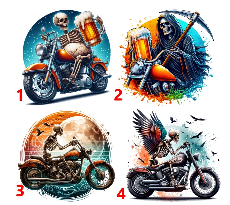 Nažehlovačka Kostlivec na motorce - 4 motivy