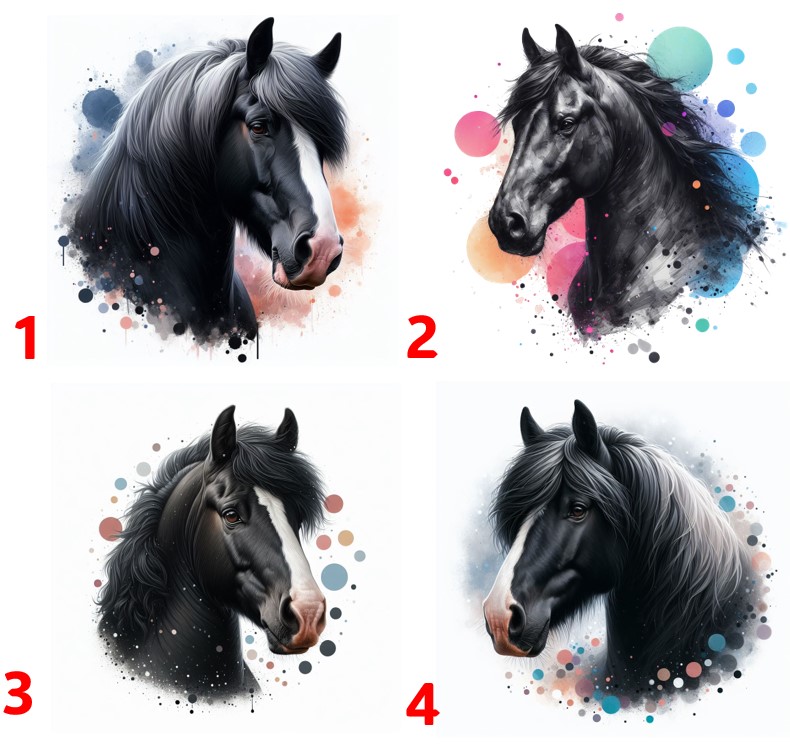 Kůň černý hlava - 4 motivy
