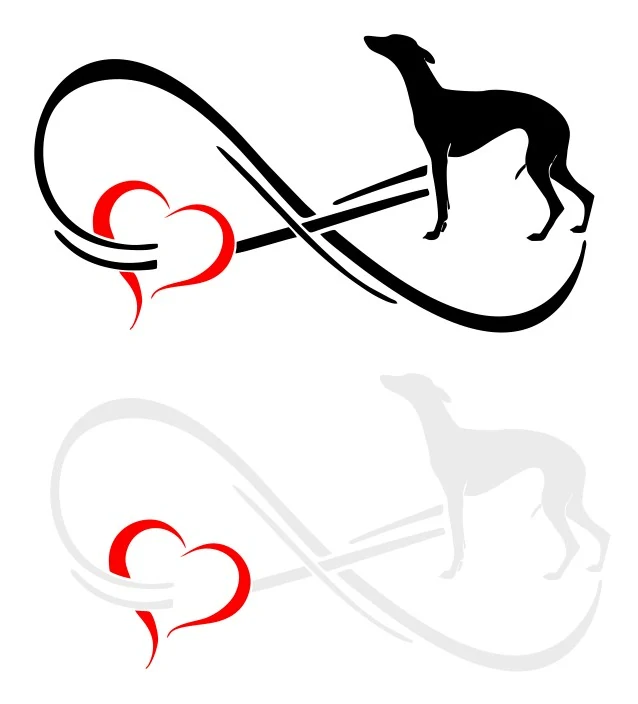 Symbol nekonečna + srdce + chrt = vizuální podpis vztahu, který nemá konec.