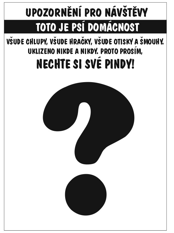 Cedulka „Psí domácnost“ je upřímné upozornění pro každou návštěvu, která ještě netuší, že u vás vládne pes.