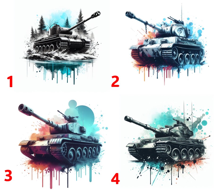 Tank - 4 motivyskladem 5 ks89 Kč/ ks