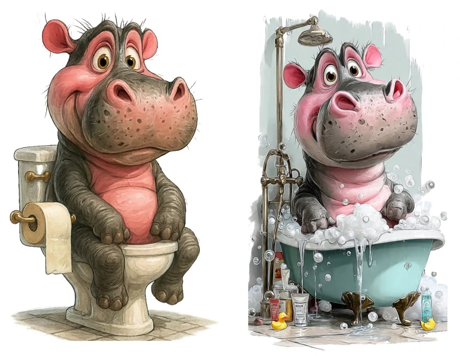 Hroch je ideální volba, když chceš, aby koupelna nebyla sterilní, ale pořád jasně označená. Navíc… hroch do vody patří. 😄