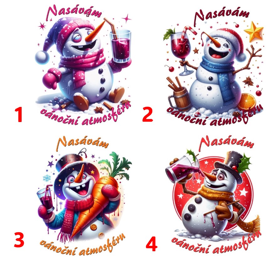 Vánoční sněhulák - 4 motivyskladem 5 ks49 Kč/ ks