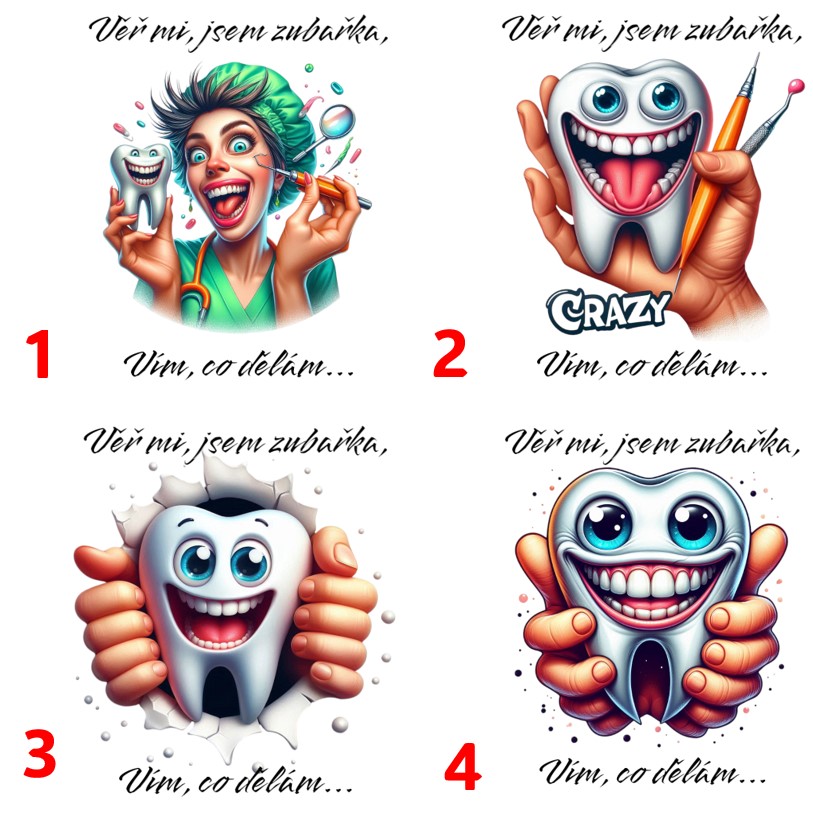 Věř mi, jsem zubař - 4 motivyskladem 5 ks69 Kč/ ks
